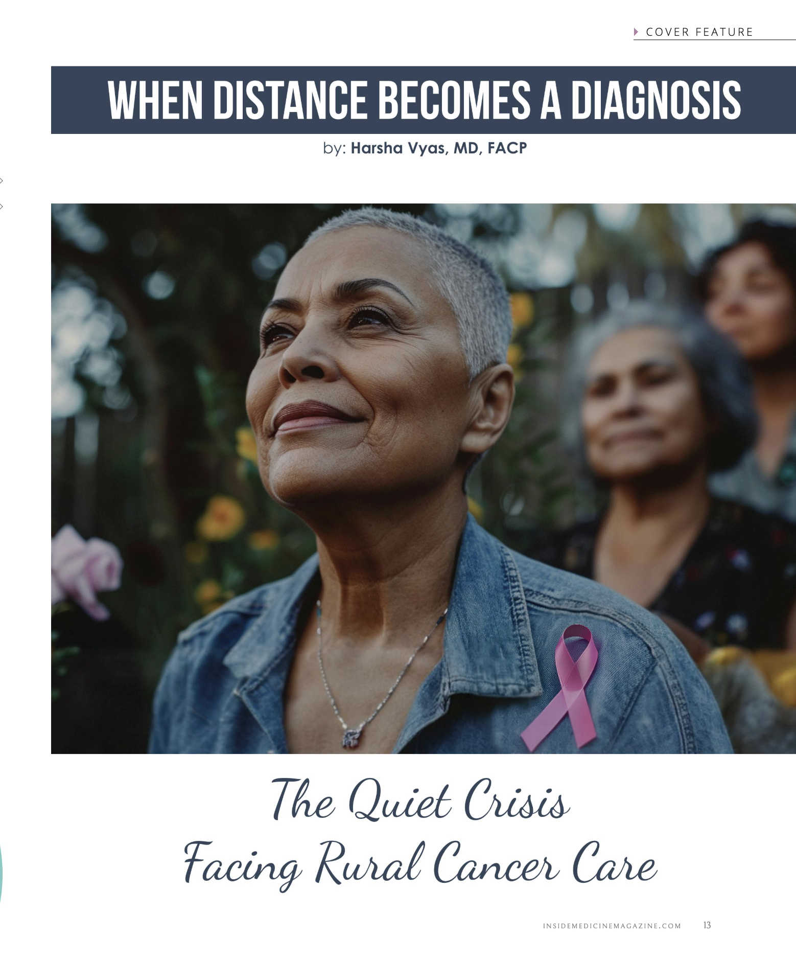 Dr. Harsha Vyas, MD, FACP, recently authored a feature in Inside Medicine highlighting the growing challenges facing rural cancer care across the United States. In the article, “When Distance Becomes a Diagnosis,” Dr. Vyas explores how geography continues to shape patient outcomes, with many individuals traveling significant distances for care—often delaying diagnosis and treatment. He underscores how systemic barriers, including reimbursement disparities, provider shortages, and administrative hurdles, disproportionately impact rural communities and make it difficult for local practices to sustain high-quality oncology services.